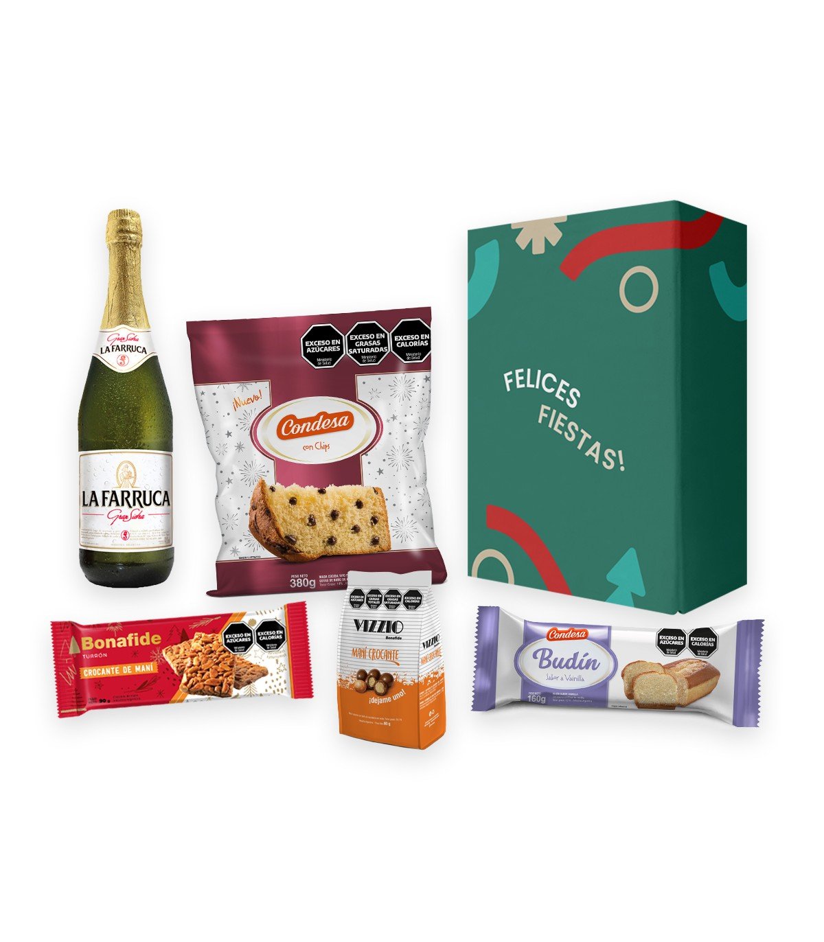 1 Caja de Navidad + 8 PRODUCTOS NAVIDEÑOS 1 Sidra SIDRA RAMA CAIDA X710 CC 1 Pan Dulce PAN DULCE CONDESA BONAFIDE CON FRUTAS X380 GRS 1 Budin BUDIN CONDESA BONAFIDE CON CHIPS X160 GRS...